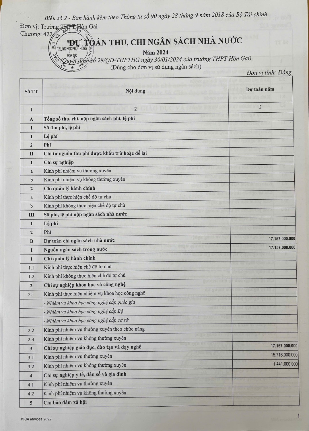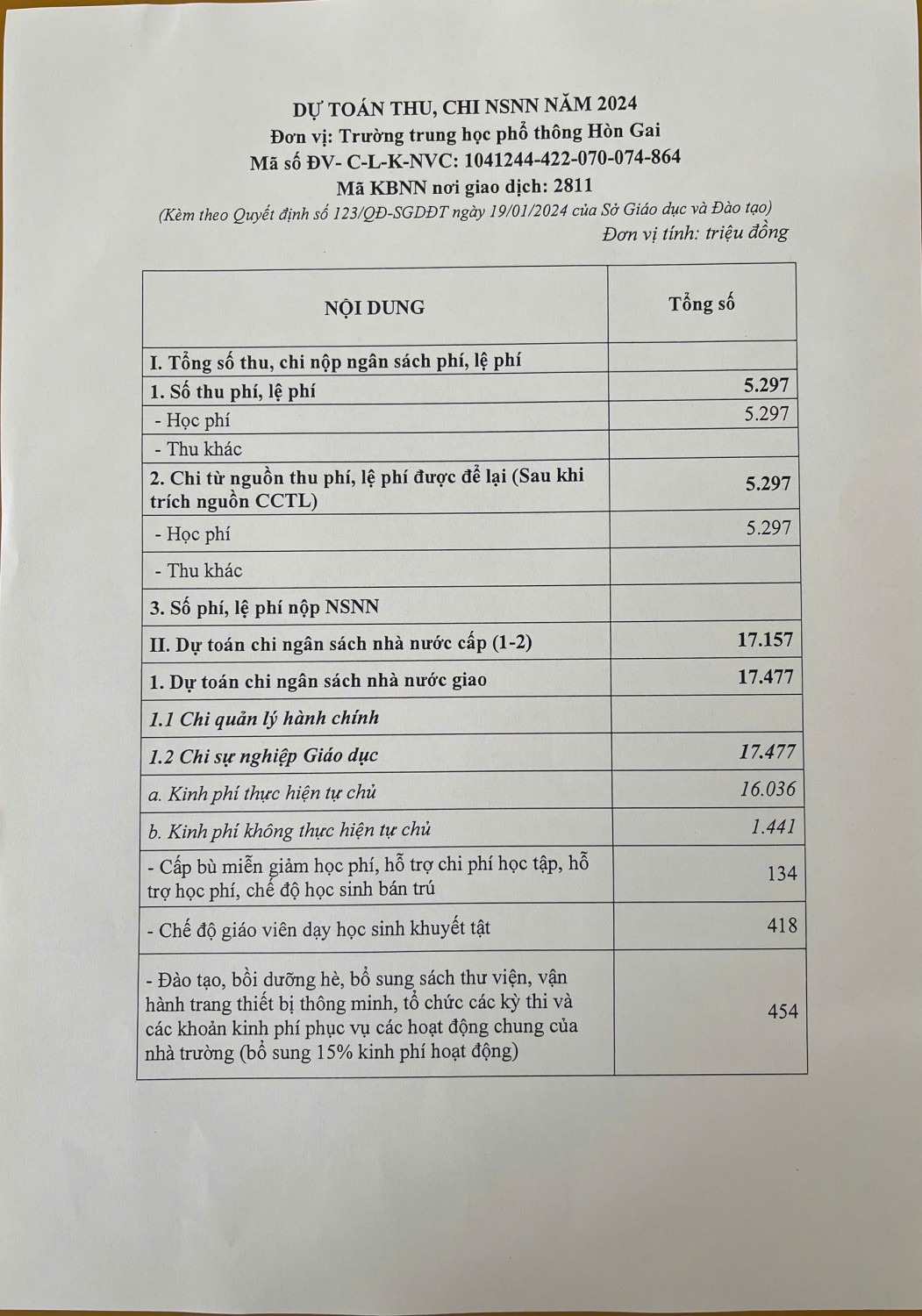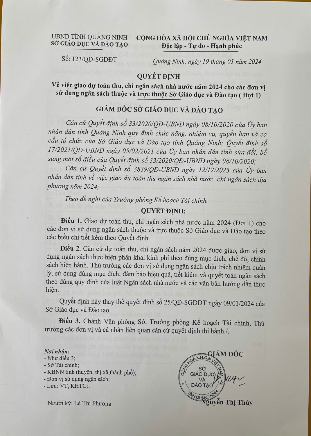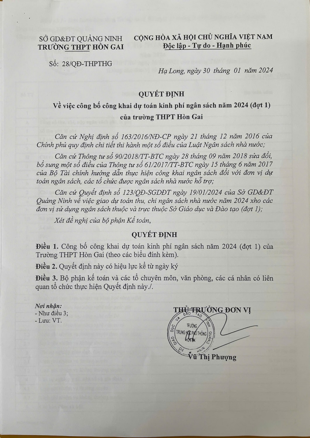 Qđ về việc công khai dự toán kinh phí hỗ trợ học kì 1 năm 2024